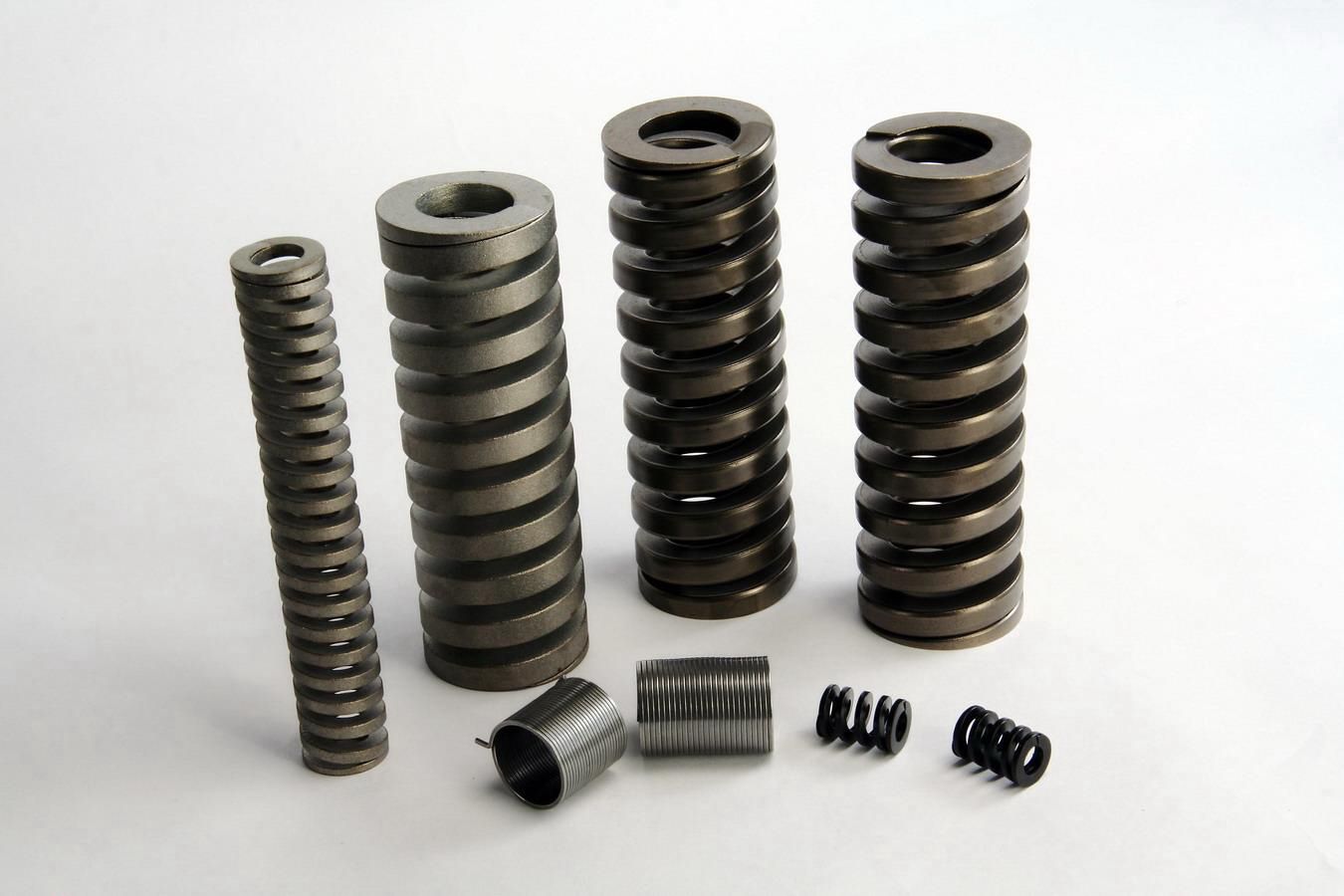 为了使压缩弹簧具有应有的特性,必须对压缩弹簧进行严格的热处理,以提高压缩弹簧在动态工况下的疲劳性能和在静态工况下的抗变性能,从而使压缩弹簧具有刚性、柔性和恰到好处。根据压缩弹簧尺寸的不同,热处理分为热成形热处理工艺和冷成形热处理工艺。压缩弹簧在不同工艺下的特性也是不同的。热成形用于大型弹簧的缠绕。加热弹簧易于扭曲成形,回弹小,淬火后需要中温回火;弹簧钢丝轧制时采用冷成形,回弹较大,冷卷成形后需要回火处理。