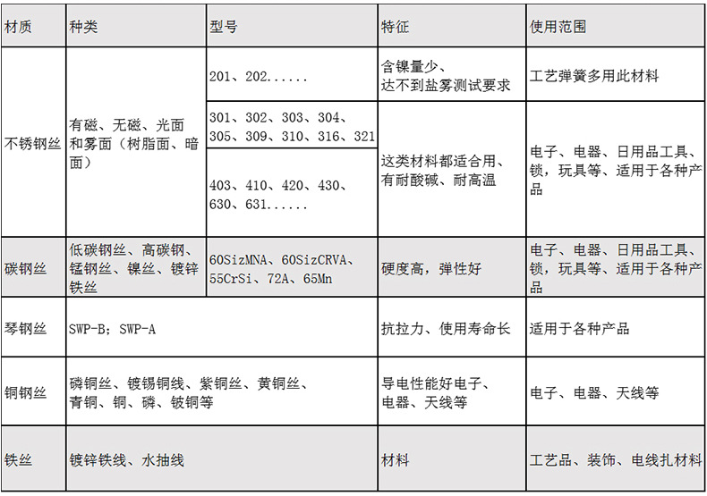 材 质 : 低碳钢,高碳钢,镀镍钢,镀锌钢丝,猛钢,琴钢