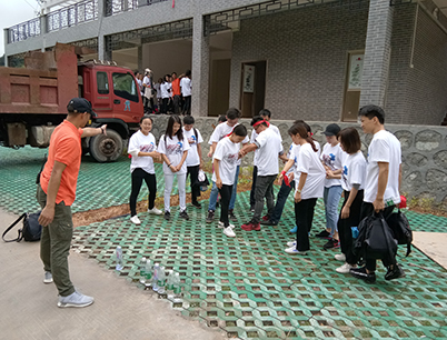 这时大家开始疲惫了,渐渐淡去了最初的那股冲劲,年轻帅气负责我们队的教官见我们有些累了。并说,到前面的空地休息一会顺便做个游戏。原来我们在徒步的过程中需要做三个游戏,也就是说在进行徒步的条件下需要完成这三个任务到达终点才算是赢者,然而这类游戏正是体验团队力量的时候,我们接受的第一个游戏任务是:一米取水瓶不能碰到地面。