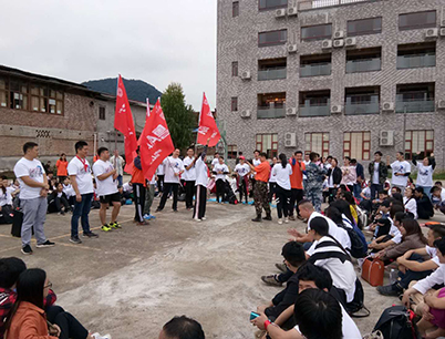 9:30到达目的地,整队领完战服,参加完开幕仪式喝完摔碗酒后准备出发。由于活动规则必须经过猜拳才决定是第几位出发,然而我们第三小组,是第十位出发的小组。眼看前面的小组,一个接一个地出发了,心里特别的着急,能不能完成任务,拿到奖励。正在我顾虑忐忑的时候,终于轮到我们小组出发。