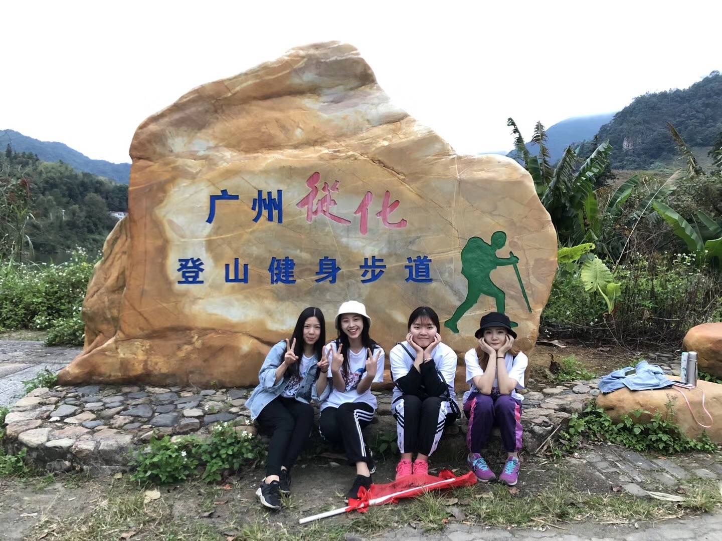在徒步的形象石下留拍下一张美照