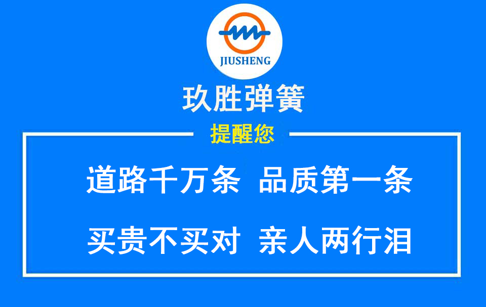 推荐理由四:玖胜弹簧采用精细化管理, 品质监管体系完善,完全有能力为客户开发和提供品质过硬,价格适中的产品。公司于2010年取得ISO90012008国际质量体系认证。