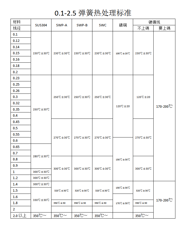 弹簧热处理标准,弹簧使用热处理温度的高低时间的长度,对弹簧的使用寿命有很大的关系。