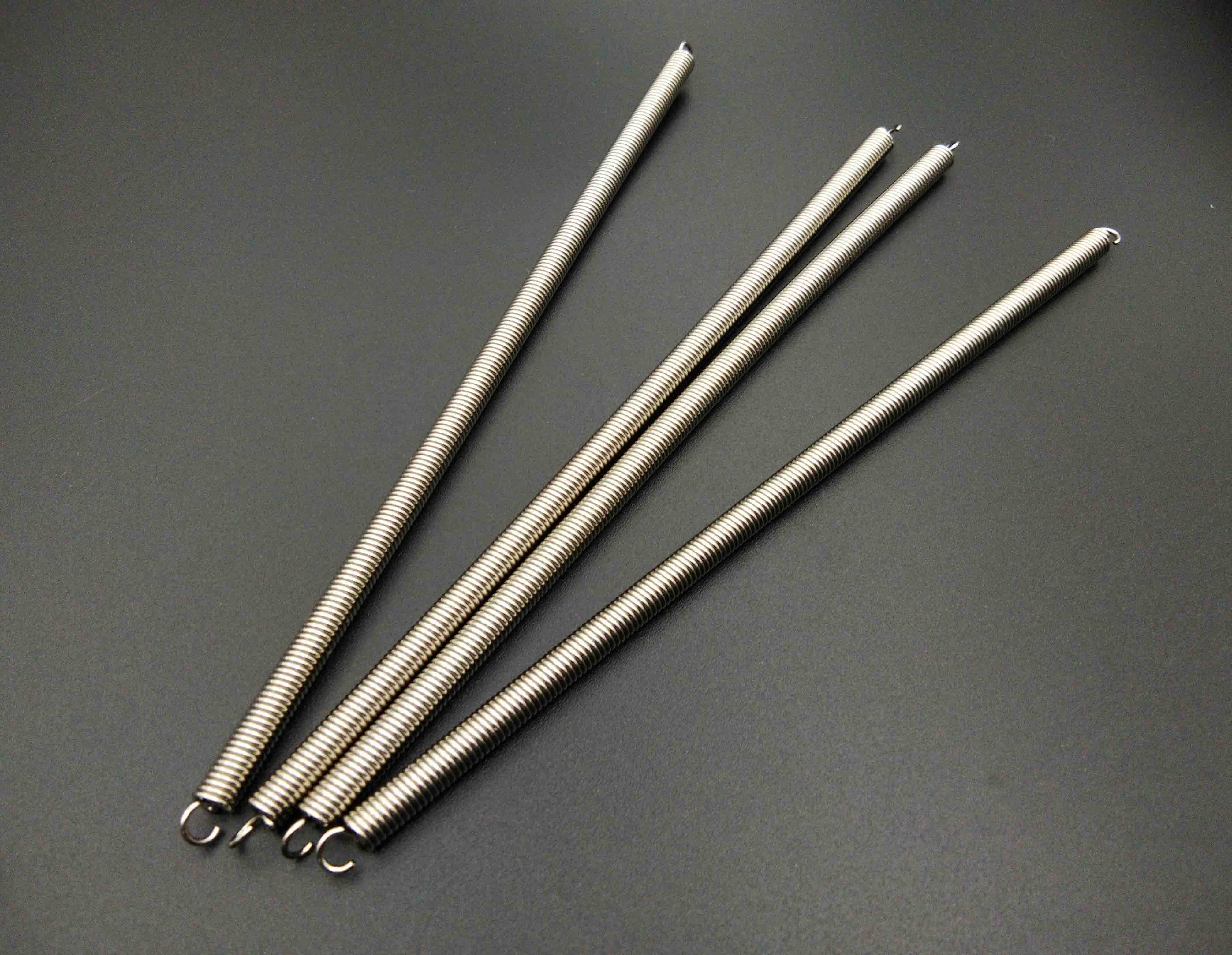 制作拉伸弹簧的材料主要有:不锈钢、琴钢、高碳钢、磷铜。油回火合金弹簧钢等