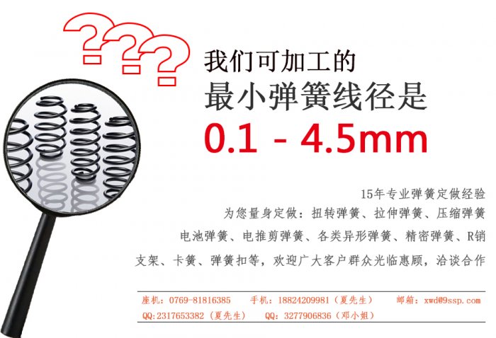 玖胜弹簧生产厂家15专注弹簧定制生产,复杂异形弹簧,线形成性弹簧,高难度弹簧,都可生产,我司弹簧线径范围在0.1-4.5之间